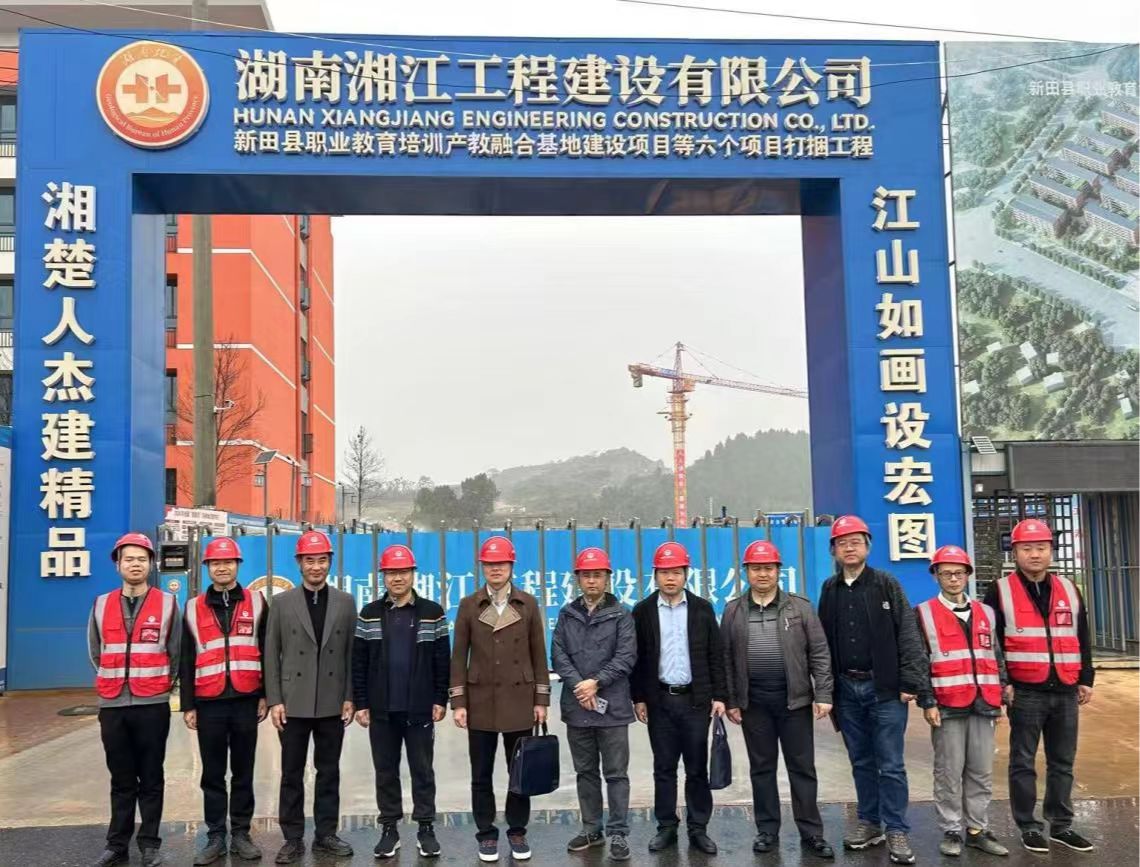 2024年11月25日,湖南省地質院質量大檢查企業檢查組組長崔小平帶隊到湘江公司新田縣職業教育培訓產教融合基地建設項目檢查指導項目建設工作,公司副總經理王建平、項目管理部經理劉玨及項目全體管理人員陪同..